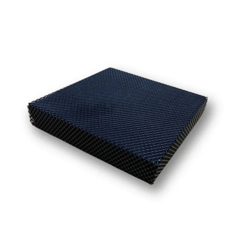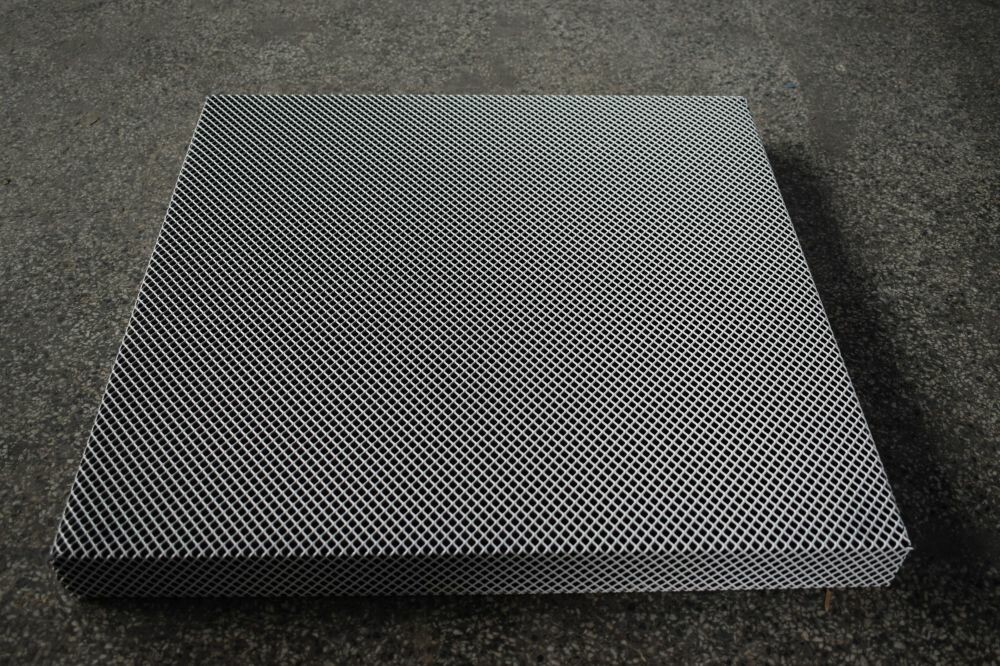 Prednja strana izvedena je od perforiranog / ekspandiranog metala, dok se u unutrašnjosti nalazi akustična PU pjena visoke gustoće — ovo osigurava stabilnu i učinkovitu apsorpciju u području srednjih i visokih frekvencija.