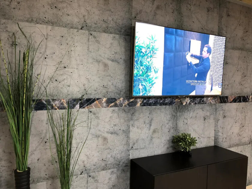 FLAT PANEL VMT je akustični panel izrađen od PET materijala, točnije od VicPET Wool-a, netkanog tekstila proizvedenog uglavnom od recikliranih plastičnih boca. Prednja strana panela izrađena je pomoću VMT (Virtual Material Technology) tehnologije tiska, koja omogućuje precizno i realno reproduciranje različitih uzoraka i boja – poput betona, drva, mramora, kamena ili jednobojnih tonova.