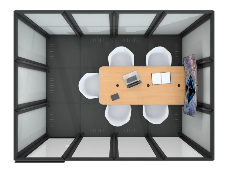 VicBooth Office Plus 3x4 je potpuno modularno plug & play rješenje koje omogućuje stvaranje izolirane meeting zone unutar postojećeg interijera bez građevinskih zahvata. Idealno za suradničke sastanke, timske radionice i strateške diskusije u open-space uredima.