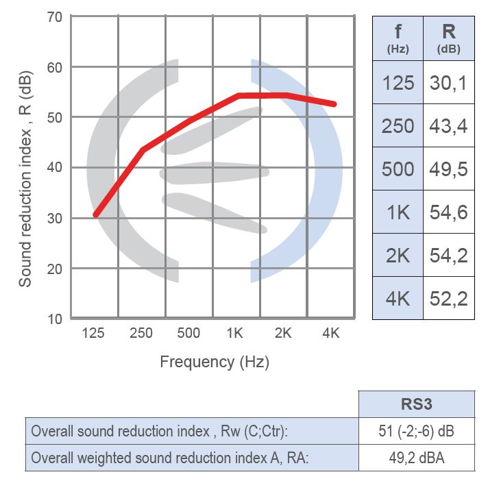 Indeks smanjenja zvuka Rw (C;Ctr): 51 (–2; –6) dB