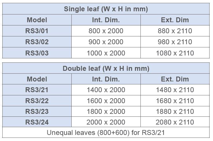 | RS3/02 | 900 × 2000 | 980 × 2110 |