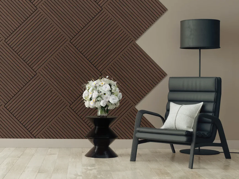 Akustični letvičasti panel (slat panel) od laminiranog PET materijala (HPL + VicPET) u kvadratnom formatu za zidove i stropove.