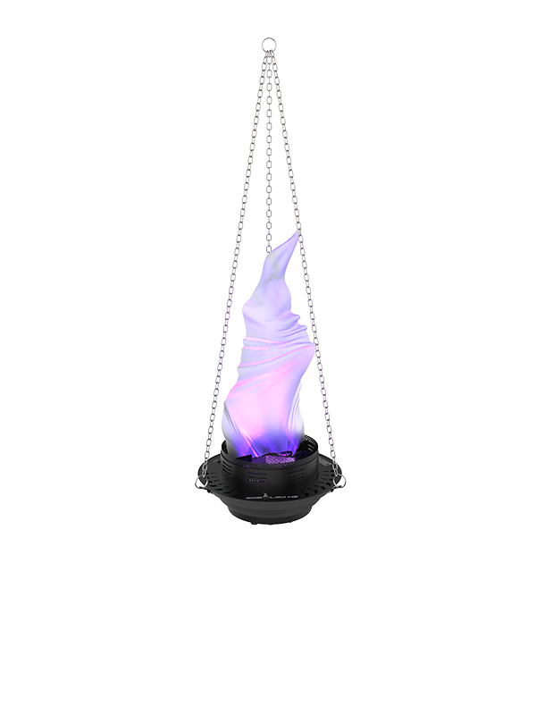 Turn up the heat on all of your displays, effects and productions with Bob LED H3, a multi-color flame simulator effect. This effect is hot, but emits no heat and is safe for use anywhere! Hex-colored LEDs make Bob LED H3 versatile offering unlimited color mixing possibilities. The silk material is UV responsive and even glows under blacklight, perfect for those spooky Halloween displays! Bob LED H3 includes 3 legs for table support and a chain for suspension options.