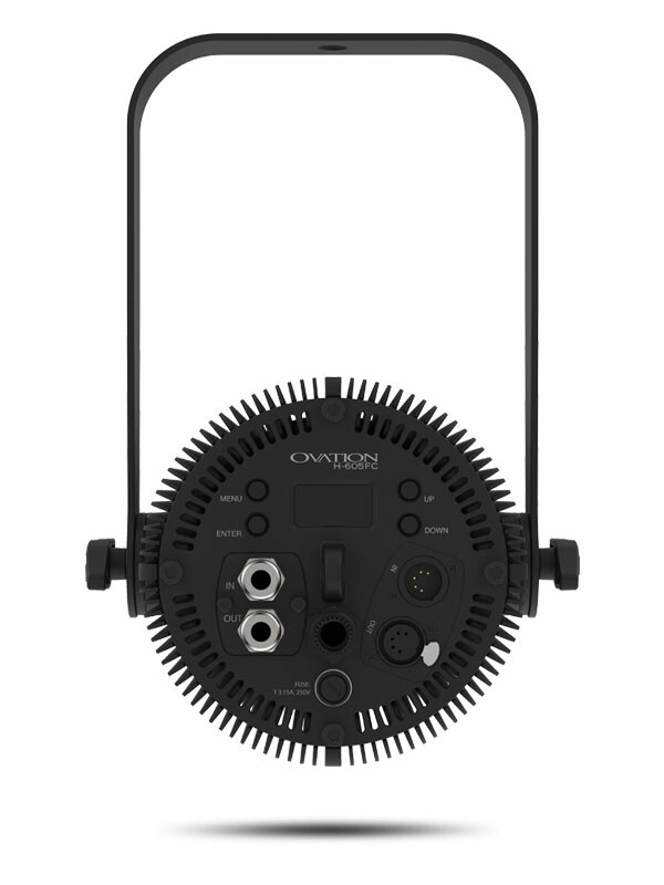 Ovation H-605FC takes full advantage of LED technology, utilizing the Ovation standard RGBA-Lime color palette to enable the fixture to replicate nearly any color with tremendous color rendering, as well as nearly any color temperature of white. Superior convection cooling provides excellent output in a compact package. Ideal for theatrical and house of worship applications, setup and control is now easier than ever with the addition of W-DMX, RDM, adjustable PWM and an easy to navigate OLED full text display. White housing not available in European Markets.