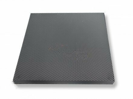 Prednja strana izvedena je od perforiranog / ekspandiranog metala, dok se u unutrašnjosti nalazi akustična PU pjena visoke gustoće — ovo osigurava stabilnu i učinkovitu apsorpciju u području srednjih i visokih frekvencija.