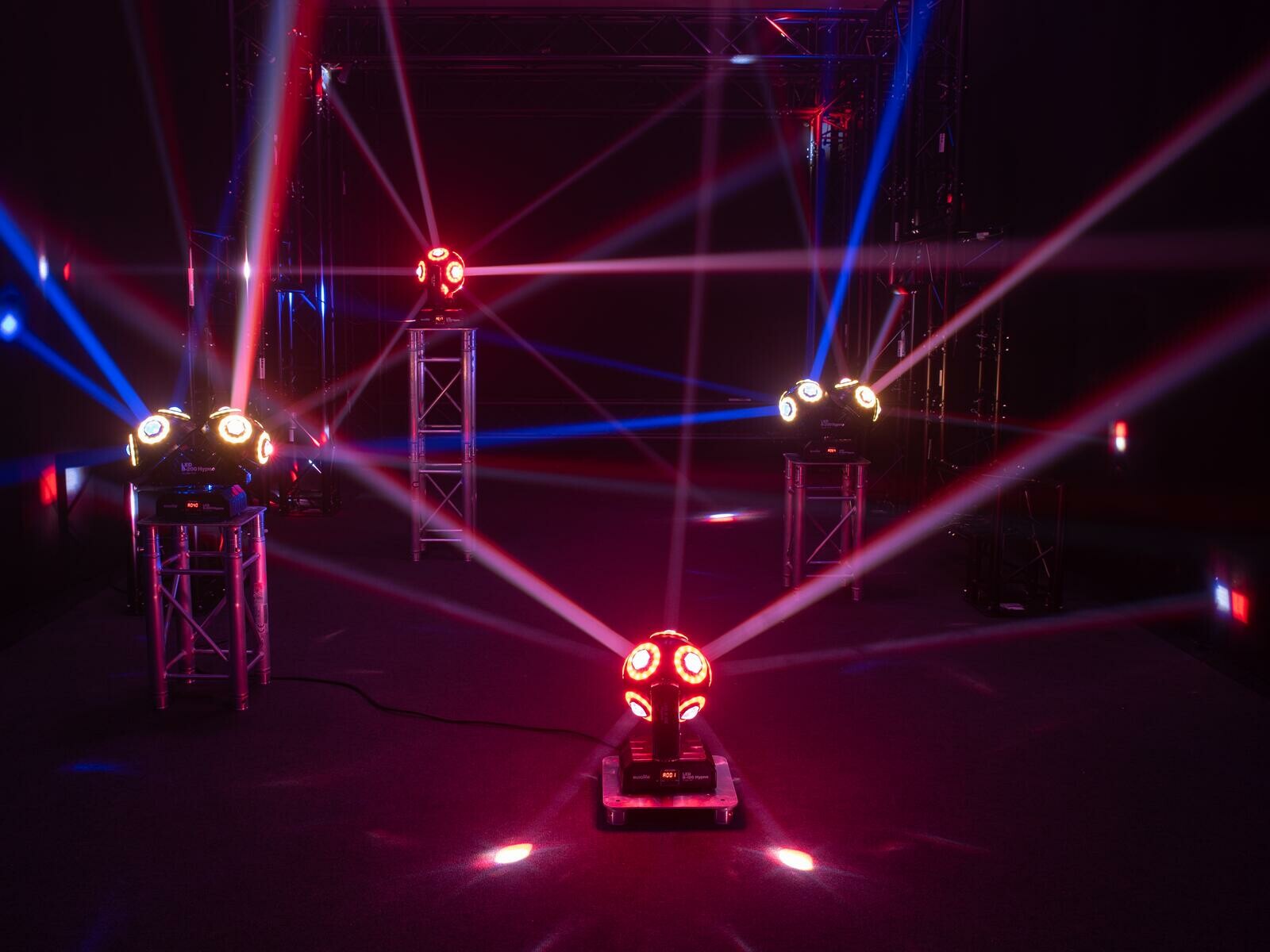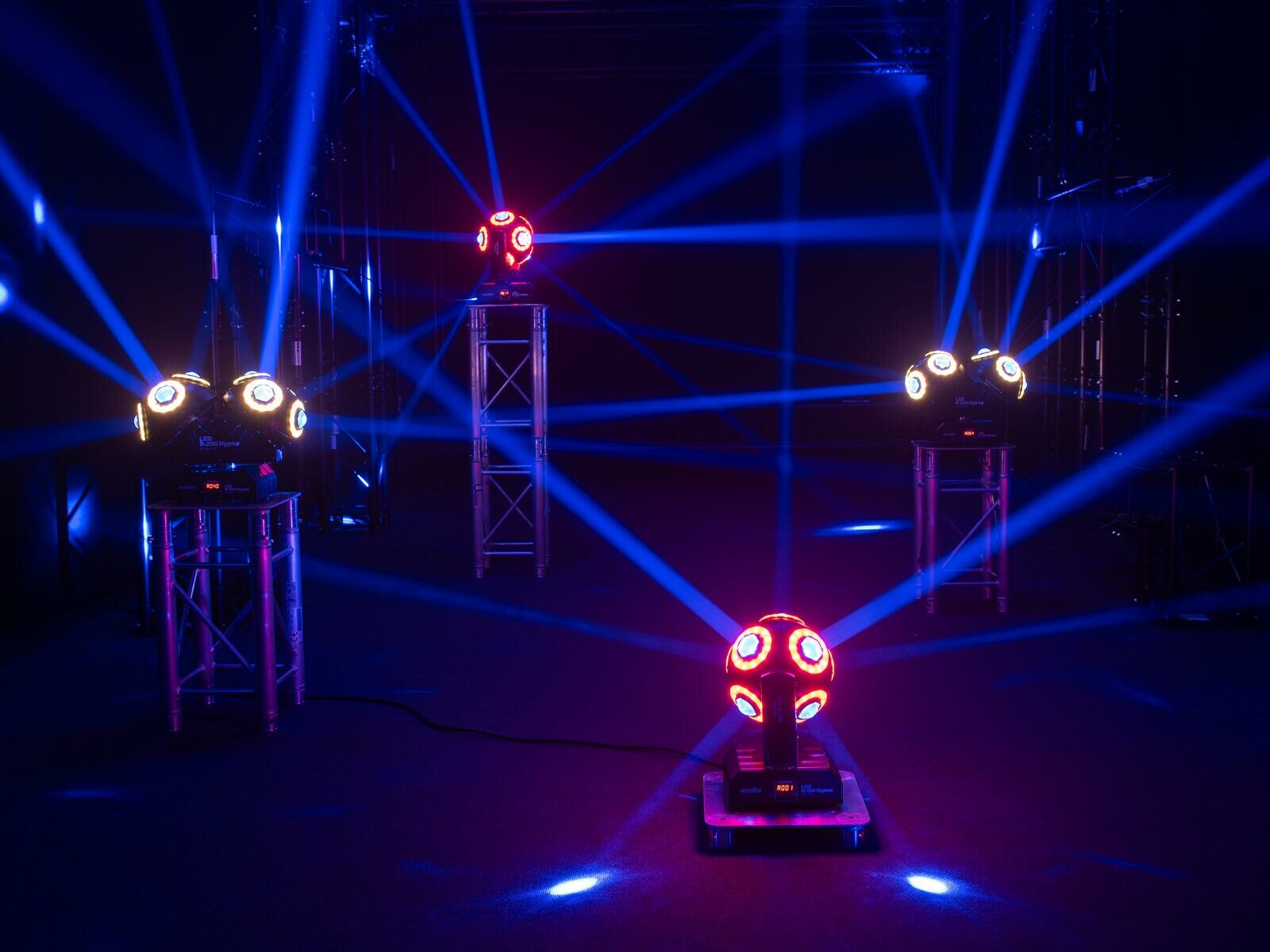 LED beam effect with RGBW color mixing and 8 RGB hypno rings
