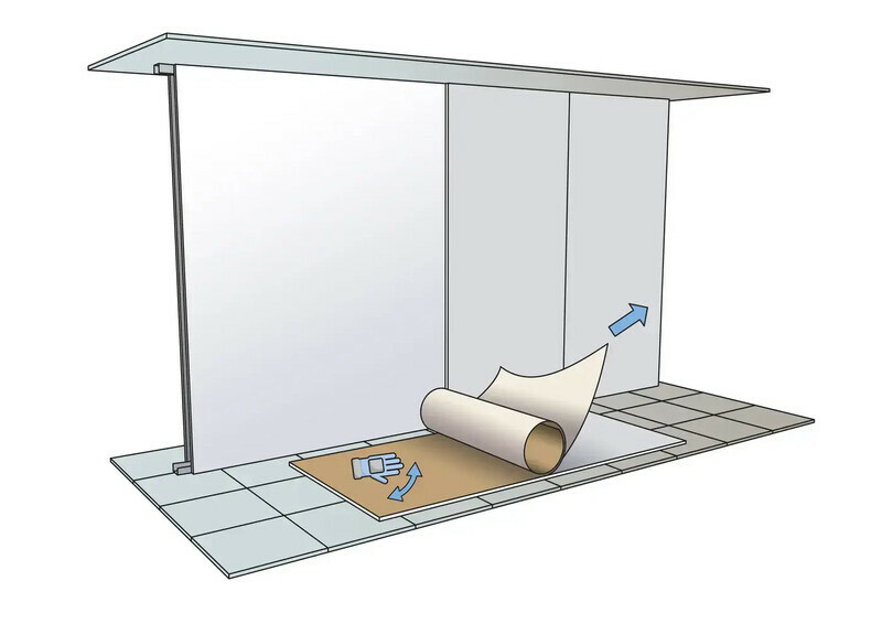 Odmotajte Tecsound SY GEO rolu i uklonite zaštitnu silikonsku foliju. Ljepljiva strana membranu pričvršćuje izravno na površinu.