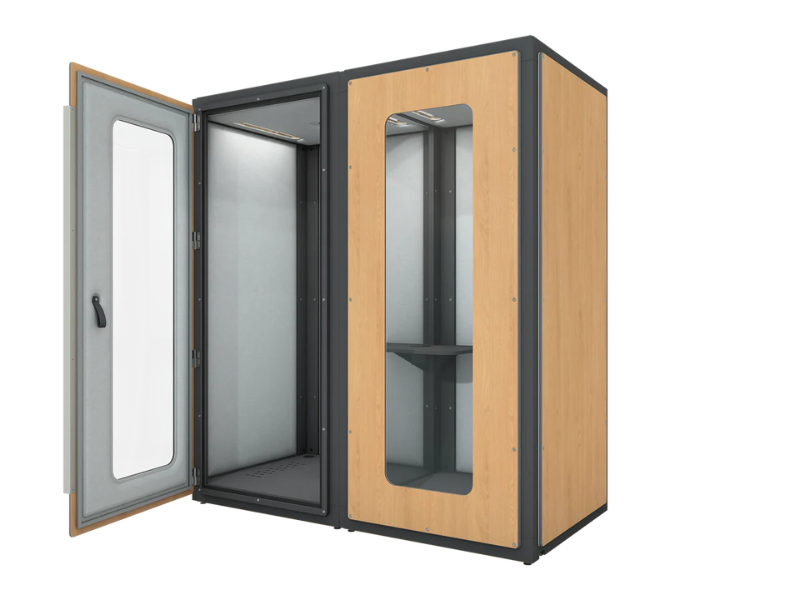 Ova profesionalna uredska kabina dimenzija int. 968×1968×2008 mm predstavlja idealno rješenje za moderne urede kojima je potrebna učinkovita, akustički optimizirana i fleksibilna privatna zona za dvoje korisnika. Dizajnirana je za telefonske i video pozive, kao i za kratke sastanke u paru, osiguravajući mir, koncentraciju i udobno radno okruženje.